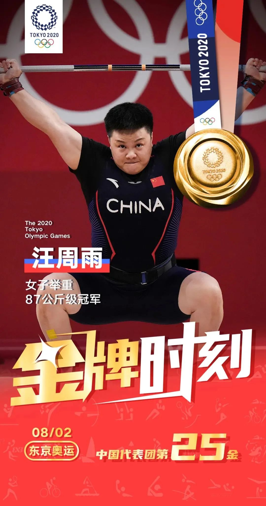 北京时间8月2日,东京奥运会女子举重87公斤级别赛事,中国选手汪周雨成功夺冠,帮助中国代表团夺得本届奥运会的第25枚金牌,这也是中国举重队在本届赛事斩获的第6枚金牌。
