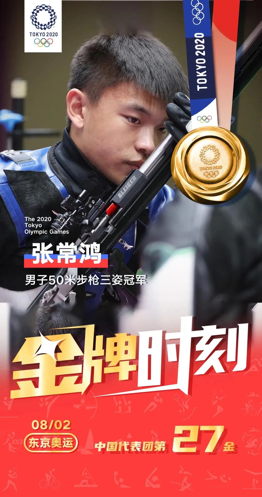 北京时间8月2日,东京奥运会男子50米步枪三姿项目决赛,经过跪姿、卧姿、站姿,中国选手张常鸿凭借着稳定的表现,以466环的成绩射落金牌,并创造了新的世界纪录!这也是中国代表团本届赛事的第27枚金牌。