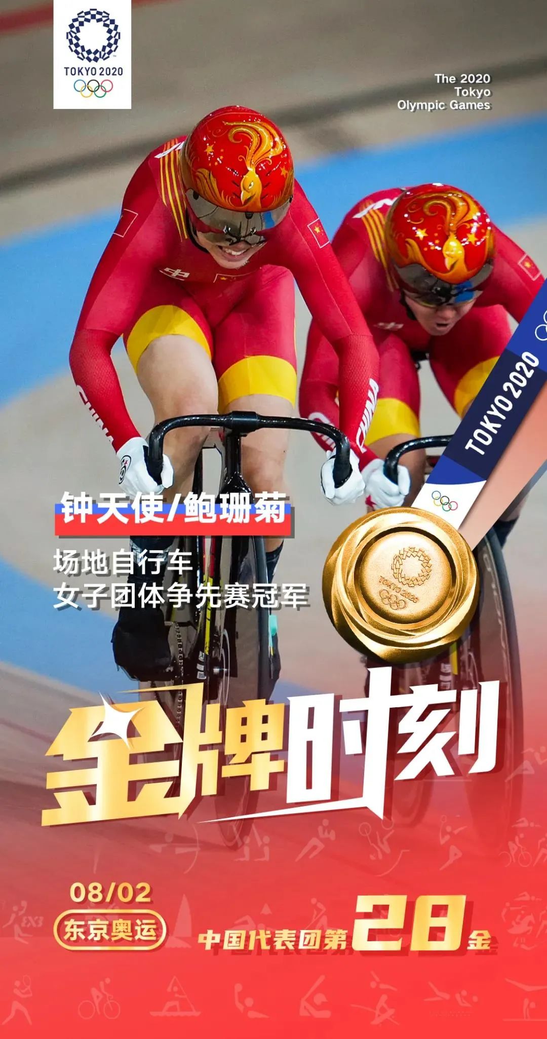 北京时间8月2日,东京奥运会场地自行车女子团体争先赛金牌赛,中国组合钟天使/鲍珊菊以31.895秒的成绩击败对手夺冠,帮助中国代表团斩获本届赛事的第28枚金牌!