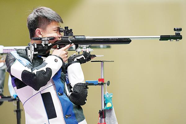 8月2日,在东京奥运会射击男子50米步枪三姿决赛中,中国选手张常鸿夺冠。新华社记者 鞠焕宗 摄