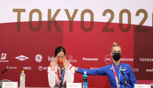 伊藤美诚也很热心,看到孙颖莎把奖牌挂反了,主动提醒了孙颖莎,告诉孙颖莎要将印有“东京2020”字样的那一面露在正面朝向摄影记者,于是孙颖莎把奖牌摘下来重新挂了一次。