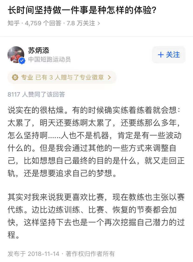 随后,越来越多关于苏炳添的“冷知识”被网友找出。早在2018年,他曾数次在某问答平台答题,网友:我答我自己