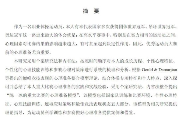 比如2008北京奥运会团体冠军、男子吊环冠军陈一冰,他因为也是北京师范大学硕士、教师,他的硕士论文就是《陈一冰重大比赛心理准备与应用研究》。据他说,学习与训练结合的后果,就是经常补课。“一旦有时间,就会像普通学生一样,坐在课堂里学习,所有同学都在‘监视’我。我在哪个教室上课,都会有人‘偷拍’,然后发到微博上。”