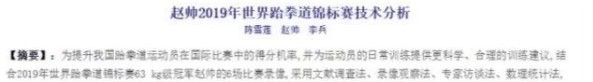 赵帅同时也是西南大学在读博士,曾作为新生代表发言。在《西南师范大学学报(自然科学版)》发表论文:赵帅2019年世界跆拳道锦标赛技术分析。
