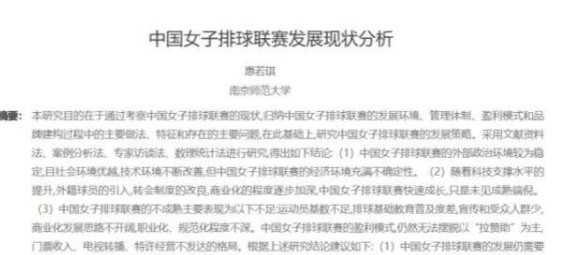 同时也是南京师范大学硕士、2017级博士生,硕士论文题为:中国女子排球联赛发展现状分析。