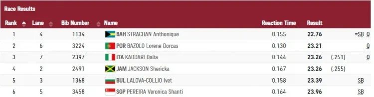 在昨日进行的女子200米预选赛上,百米铜牌得主,牙买加女飞人谢瑞卡-杰克逊200米预赛意外出局,本来以她的实力是稳进决赛的,结果在最后冲刺阶段她觉得自己晋级稳了,就开始慢跑,然后就被超了,最终以千分之四秒的差距排名第四惨遭淘汰。