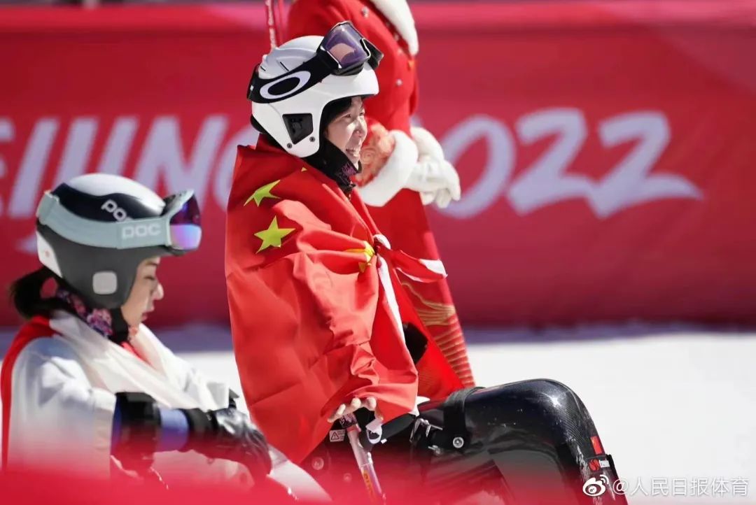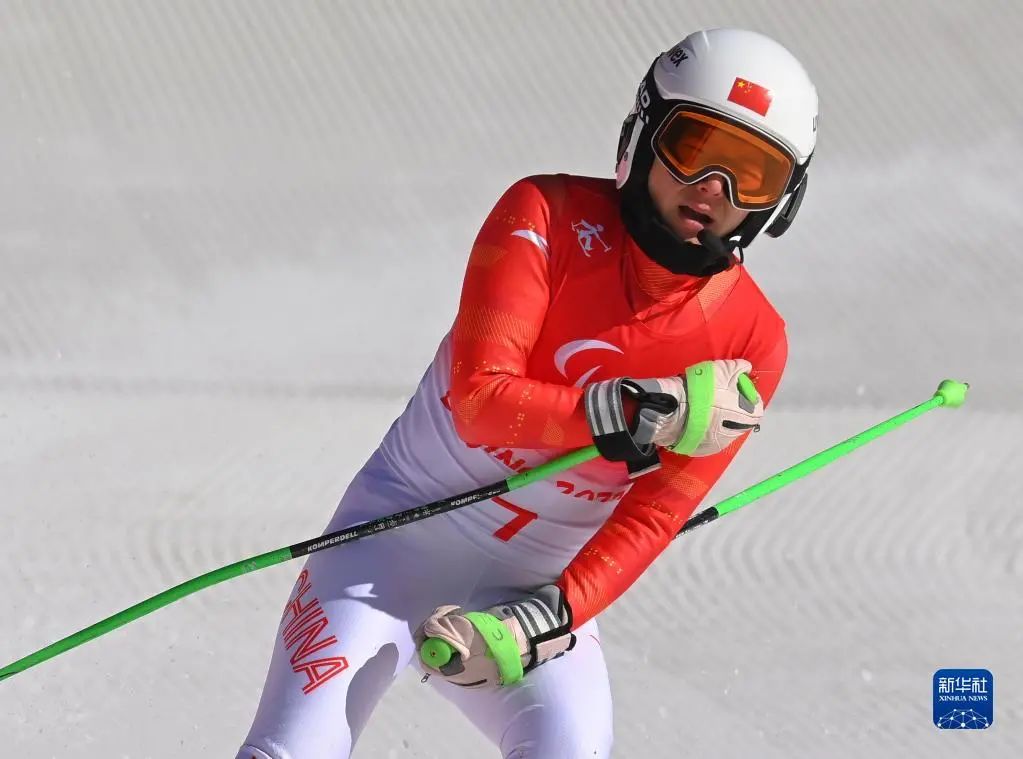高山滑雪女子滑降(视力障碍组)比赛中,中国选手朱大庆夺得银牌。这是中国代表团在北京冬残奥会上获得的首枚奖牌。