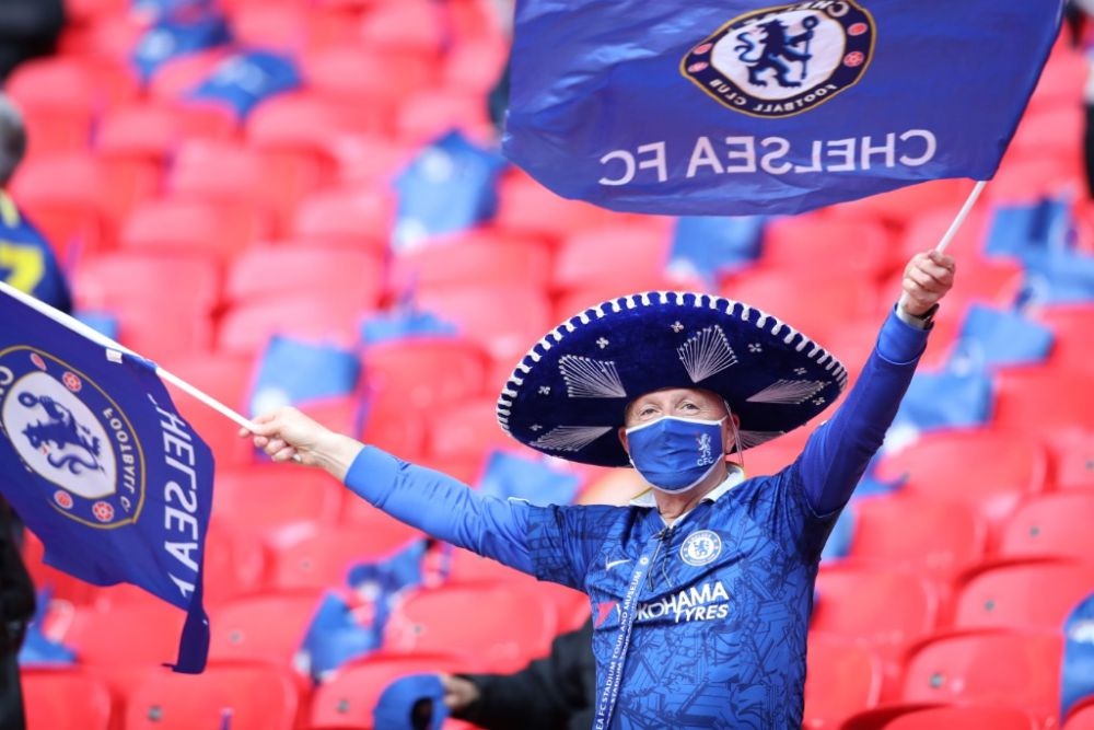 2021年5月15日,切尔西队球迷在开赛前为球队鼓劲。新华社发(马修·英佩摄)