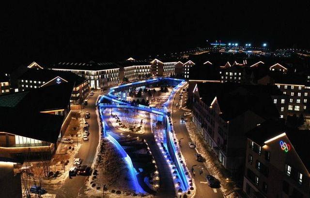张家口冬奥村夜景(无人机照片)。新华社记者 杨世尧 摄