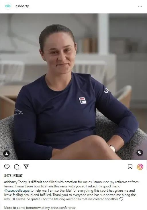 23日上午,一则消息震惊了体坛——26岁的现WTA女网世界第一、新科澳网冠军阿什莉·巴蒂突然宣布退役。