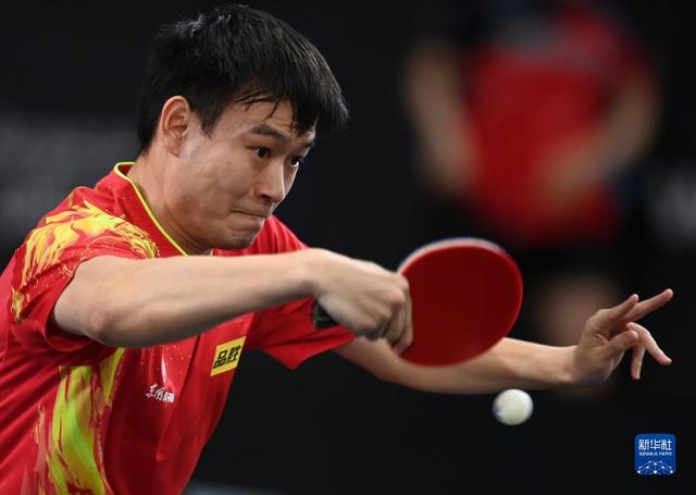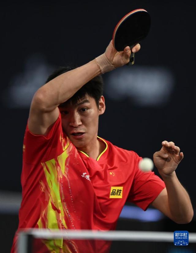 3月26日,中国选手周启豪在比赛中回球,他以3比2战胜队友孙闻,晋级正赛。