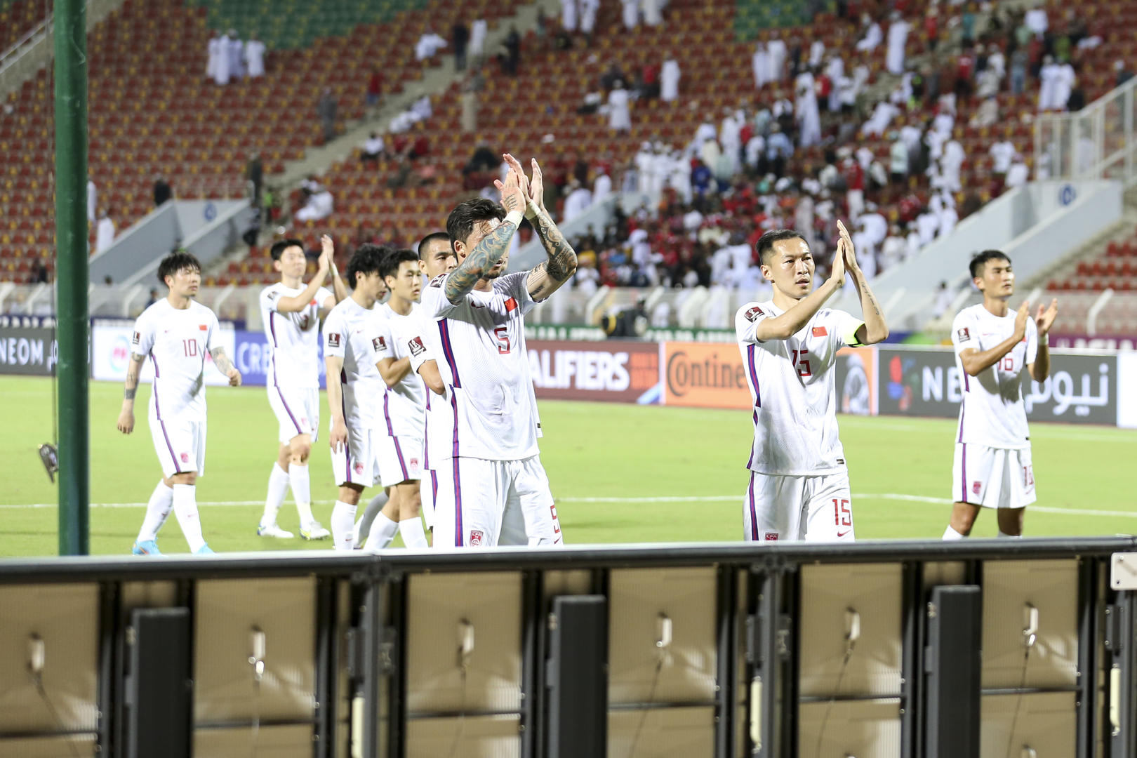 12强赛不敌阿曼队,中国队球员赛后谢场 图据 IC photo