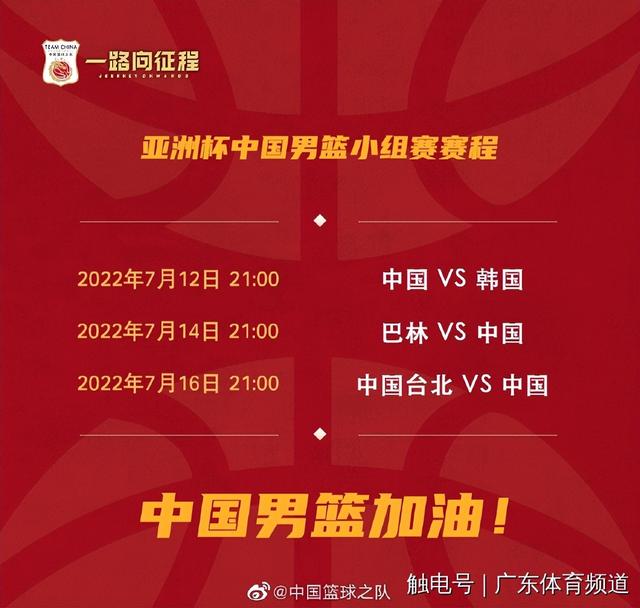 随后7月14日晚21点,中国男篮将对阵巴林,7月16日21点,中国男篮将对阵中国台北男篮。