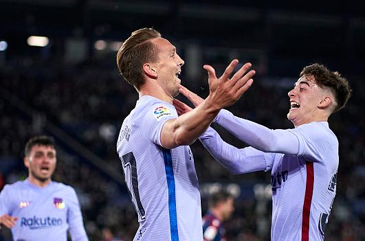 今晨,巴萨右后卫阿尔维斯第52分钟在禁区内犯规,莫拉莱斯主罚点球命中,莱万特以1比0领先。第56分钟,巴萨中卫加西亚在禁区内防守角球时手球犯规,马尔蒂操刀主罚点球,被门将特尔施特根扑出。第59和第63分钟,奥巴梅扬和替补出场的佩德里分别建功,巴萨以2比1反超。