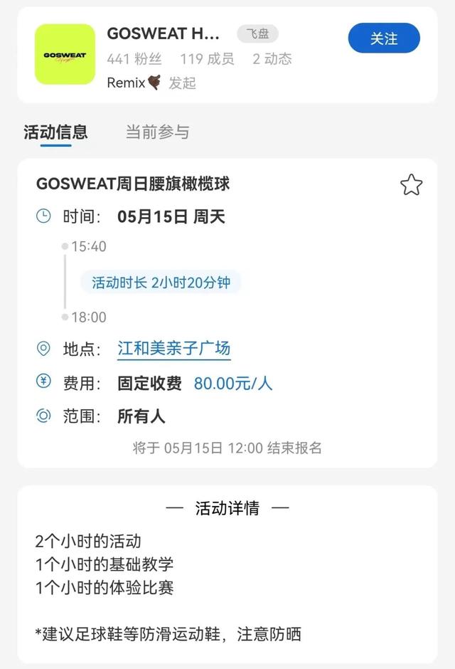 花上七八十元,就能快乐一个下午。/GOSWEAT 腰旗橄榄球活动报名截图