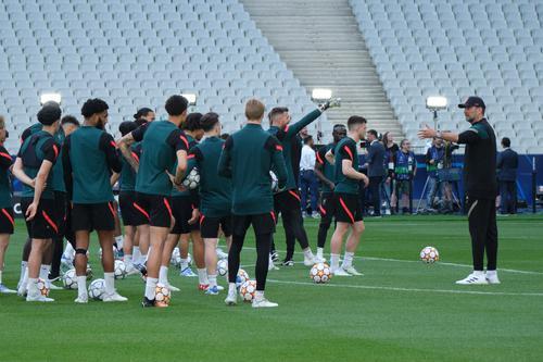 利物浦队主教练克洛普(右一)组织球员训练。新华社照片