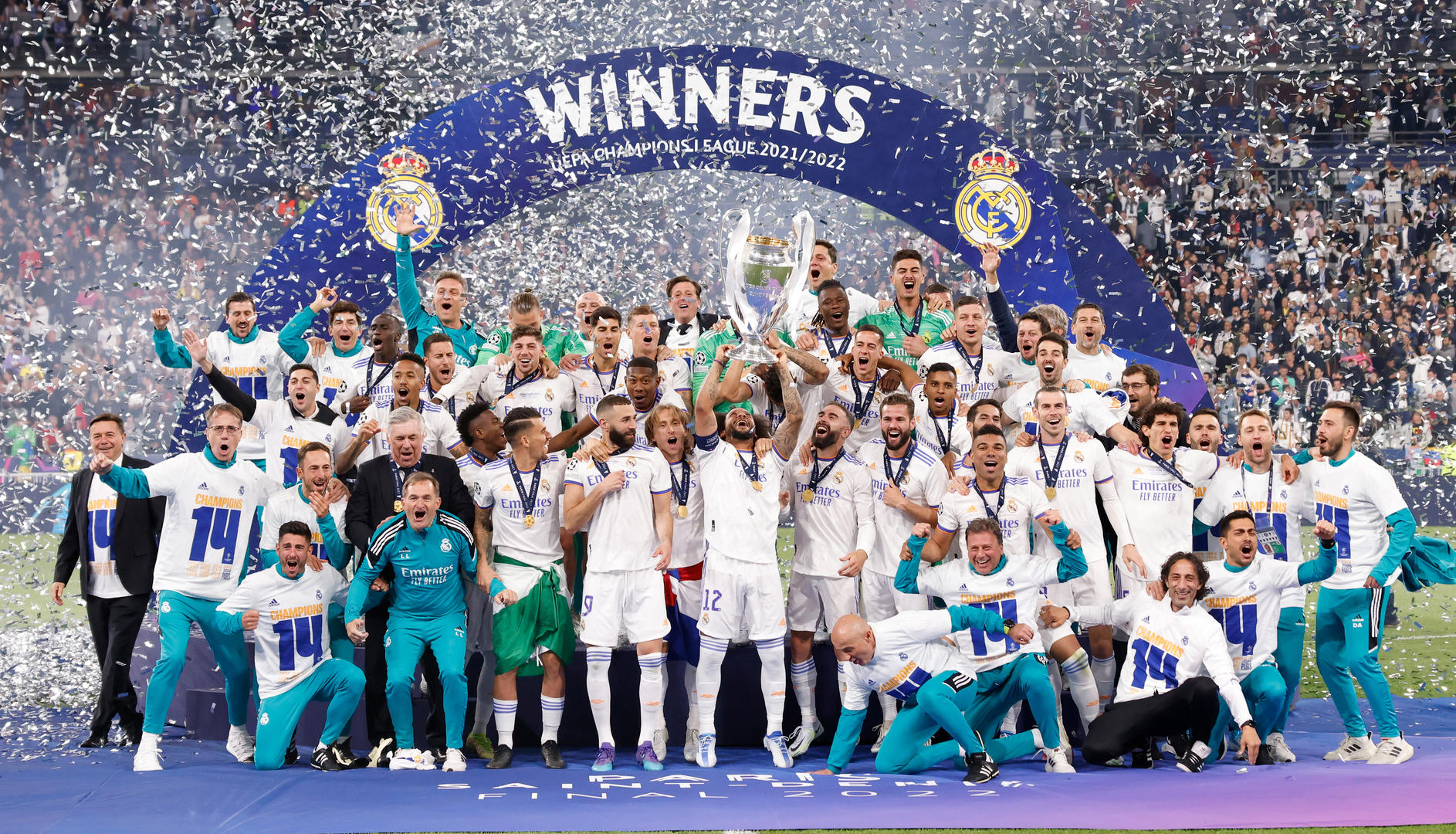 北京时间5月29日凌晨,2021/22赛季欧冠决赛在法兰西大球场展开争夺,皇家马德里1比0小胜利物浦,本泽马进球无效,威尼修斯破门,库尔图瓦多次扑救。皇马第14次夺得欧冠冠军。值得一提的是,皇马队内有9名球员的夺冠次数达到了5次,追平了C罗。