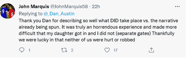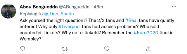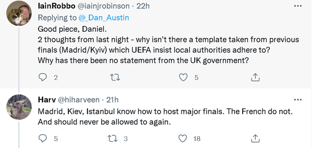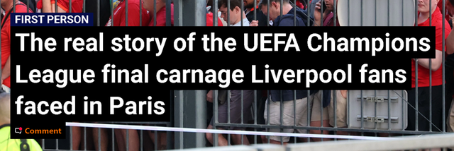 虽然这场比赛以利物浦的落败而结束,但在赛场外,英国人显然是不服气的,因为他们认为自己遭到了法国警察的恶意对待。