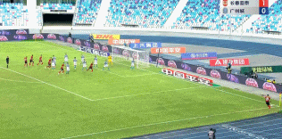比赛第35分钟,廖承坚右侧角球罚入禁区,谭龙高高跃起头槌破门,长春亚泰2-0领先广州城!