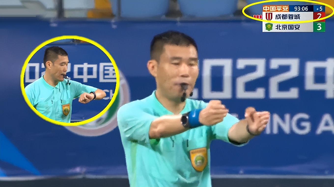 更有意思的是,吹完终场哨后,裁判还特意看了手表,丝毫没有发觉比赛少踢了2分钟。这让比分落后一方的成都蓉城很不满。成都蓉城的洋帅徐正源在场边暴跳如雷,一边指着手腕处示意比赛时间少了。