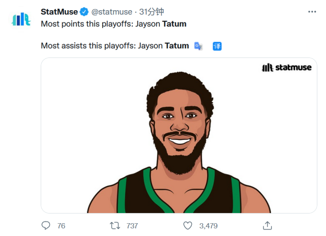 凯尔特人队今天能够取胜,当家球星塔图姆的发挥十分出色,全场比赛,塔图姆得到26分6篮板9助攻。在关键的末节比赛中,绿军一度遭遇困境,塔图姆连得8分帮助球队稳住了局势。今年季后赛迄今为止,塔图姆的总得分和总助攻均排名全队最高,这足以彰显出他的核心地位。