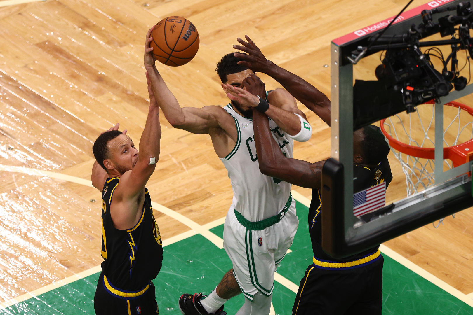 暂停回来威金斯库里连续命中跳投追进比分,波士顿加大防守强度限制库里接球,而勇士其他球员在本节依然无法找到有效的进攻手段,全队最后一节只拿到了11分。塔图姆抓住机会突破内线得分,拿到26分的同时送出8次助攻,绿军再次打停勇士。
