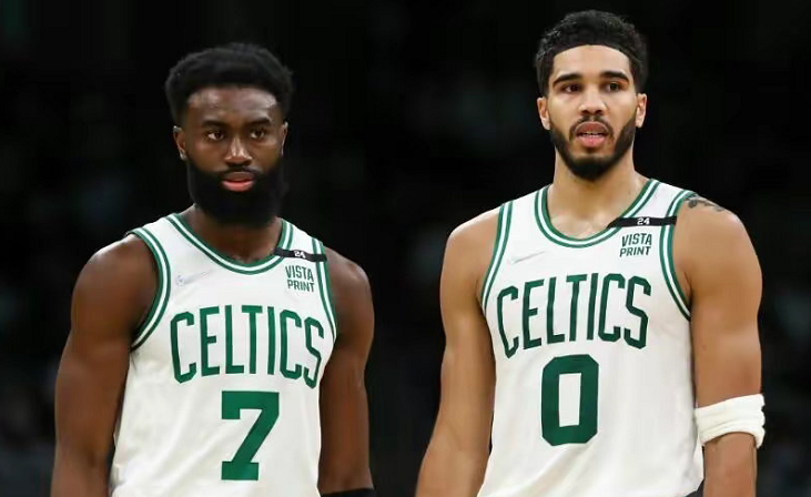 双探花身先士卒,刷爆纪录。布朗第一个吹响了集结号,首节独得17分+5篮板+3助攻,为比赛奠定胜局。据统计,布朗单节17分追平雷阿伦保持的绿军队史球员总决赛个人单节得分最高纪录。整场比赛下来,布朗砍下27分+9篮板+5助攻,各种炸筐让人叹为观止。塔图姆拿到26分+6篮板+9助攻,仅失误2次,这或许不是最好版本的塔图姆,但这绝对是绿军最乐意看到的塔图姆——哪怕他受困于肩伤投射不算高效,但他攻得很强硬,在杀伤与找队友之间找到了平衡点。据统计,塔图姆(24岁零97天)和布朗(25岁零227天)是绿军队史上第一对25岁以下在总决赛同场至少砍下25分的双人组!