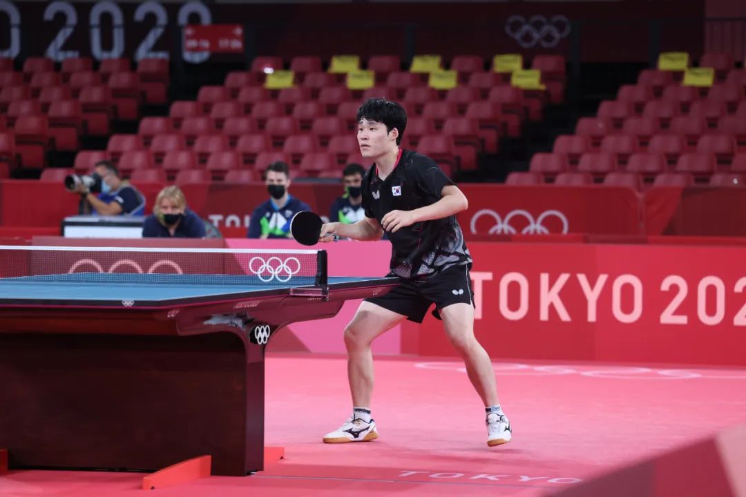 张禹珍属于那种正手技术突出,跑动能力很强的运动员,他的技术特点非常符合侧身接发球的要求。图中,他正是准备侧身作为接发球的战术变化,尝试打出更具威胁的战术。