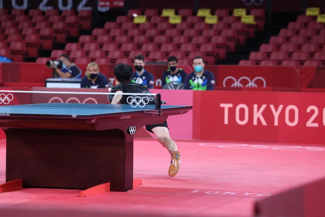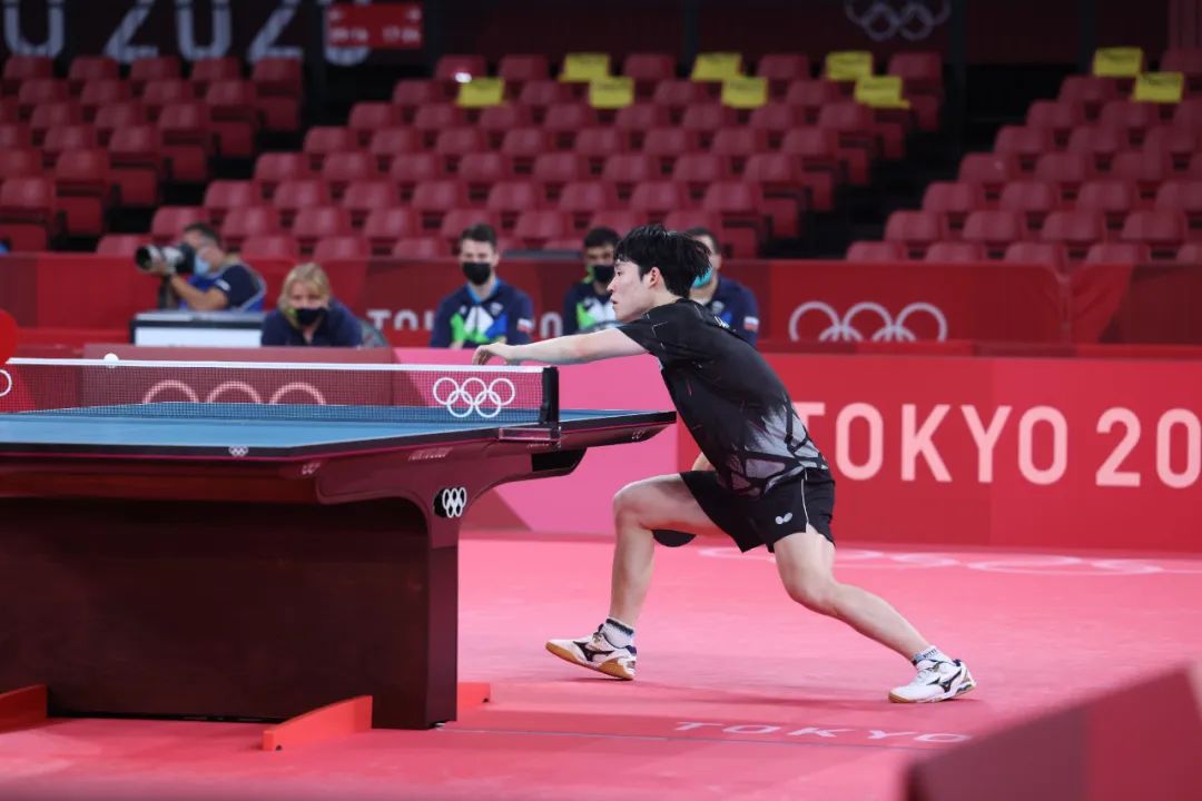 张禹珍的侧身意图被对方识破了,面对突如其来的正手位大角度急长球,他竭尽全力完成极限扑救,展现了很强的个人能力。在侧身移动中,张禹珍准确判断到对方偷袭的急长球及落点,迅速做出动作反应。由于来球速度很快,他只能在原地迅速调整双脚重心,尝试跟住来球节奏并进行扑救。