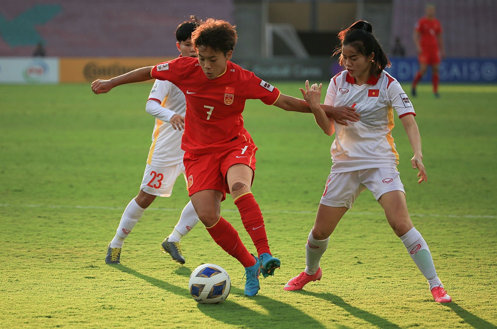 1月30日,王霜(前左)在2022女足亚洲杯四分之一决赛中。新华社发