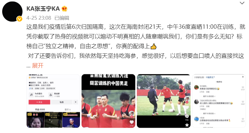 国足从十二强赛上铩羽而归后,针对种种对国足的非议,国脚张玉宁在个人社交平台上强烈回应,怒批球迷。