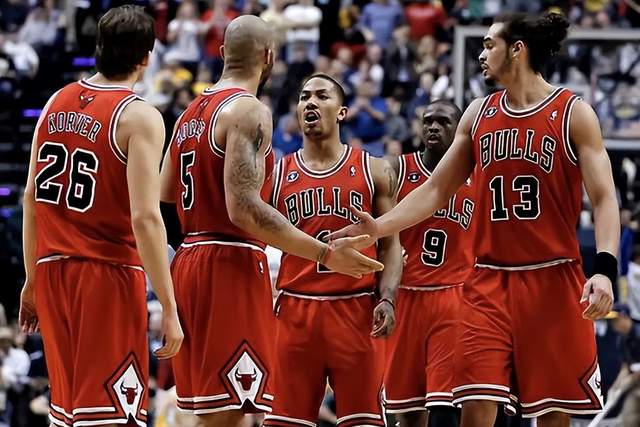 11年公牛就已经62胜打进了东部决赛,随后12年公牛再度力压热火成为东部第一,这一年公牛首发是罗斯、汉米尔顿、罗尔邓、布泽尔和诺阿,替补席上还有科沃尔、吉布森、阿西克、沃特森、布鲁尔等优质轮换阵容,结果没想到季后赛第一场罗斯就遭遇韧带撕裂赛季报销,随后大比分2:4公牛惨遭76人黑八!