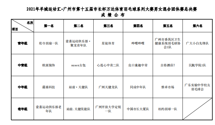 中国体育报讯 2021年羊城运动汇•广州市第十五届“市长杯”万达体育羽毛球系列大赛男女混合团体赛总决赛于2022年6月9日至12日在广州市羽毛球运动管理中心举行。