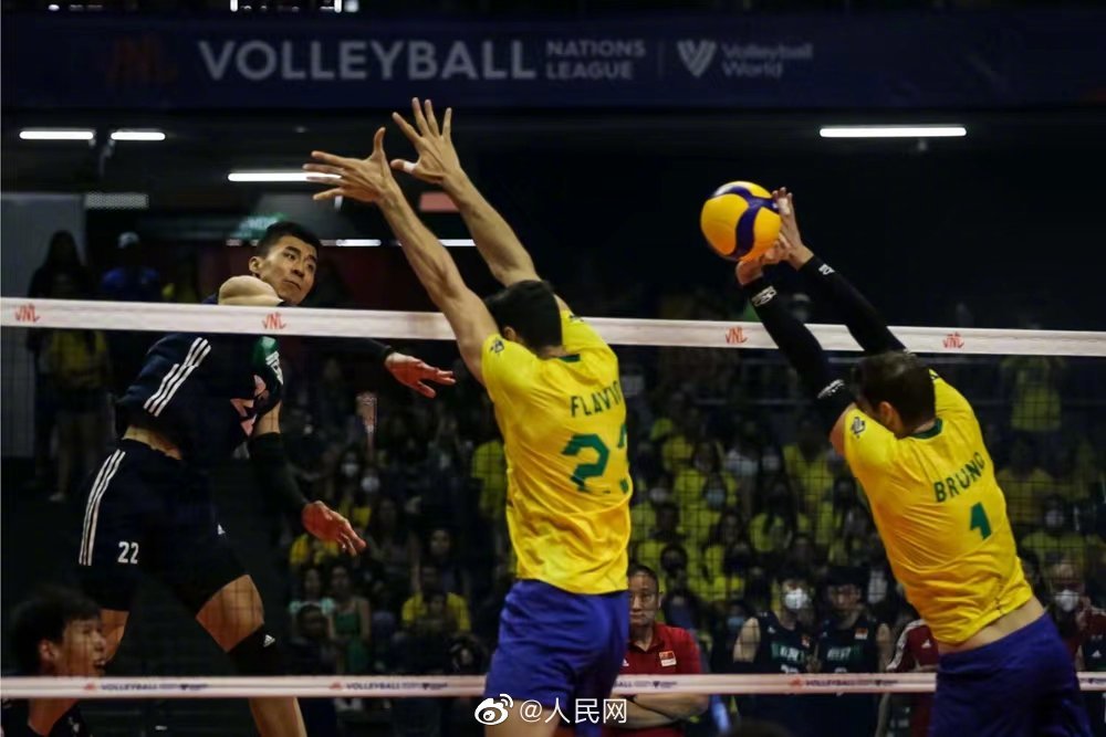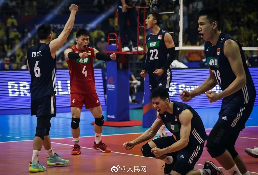 北京时间6月12日晚,在2022年世界男排联赛巴西站中,中国男排以3:0(25:23、31:29、25:23)横扫世界排名第一、东道主巴西男排,取得首场胜利。#中国男排战胜巴西男排#(人民网胡雪蓉 图:国际排联官网)