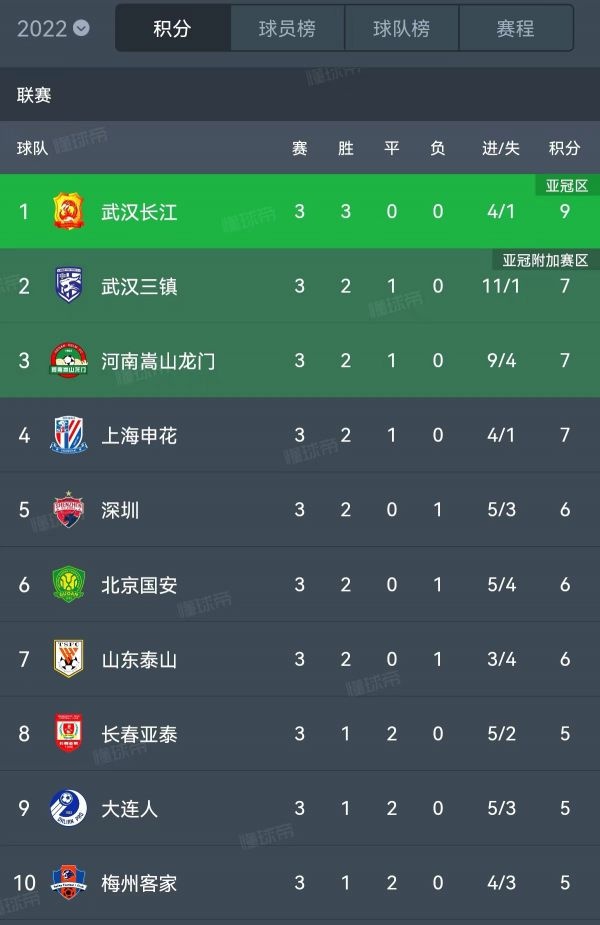 目前的中超积分榜上,武汉长江作为中超18支球队中唯一的“三连胜”球队高居榜首,而紧随其后的则是同城球队武汉三镇。两支来自武汉的球队联袂霸榜中超,创造了湖北武汉足球职业化改革29年以来的最佳开局。