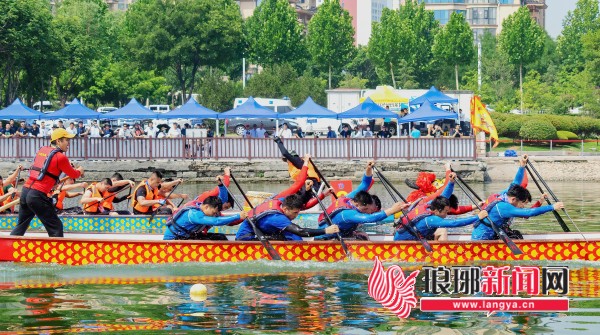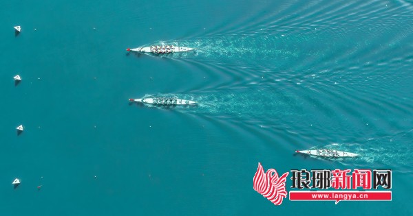 当日,第十一届中国沂河体育节锦绣兰山龙舟邀请赛在沂河水上运动中心举行,来自临沂市各县区的15支龙舟代表队240名队员分别参加直道竞速200米、500米两个项目的角逐,以开启夏日水上运动的方式,倡导全民健身。(尹召功 许传宝 摄)