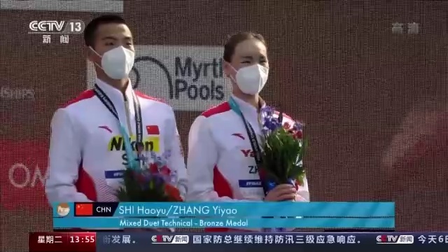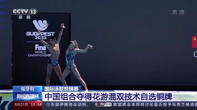 2022年国际泳联世锦赛,花样游泳混合双人技术自选决赛昨天在匈牙利布达佩斯进行。中国混双组合石浩玙、张依瑶夺得铜牌,取得历史性突破。