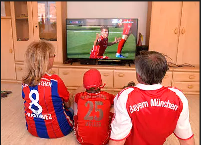 一家人在电视机前看比赛