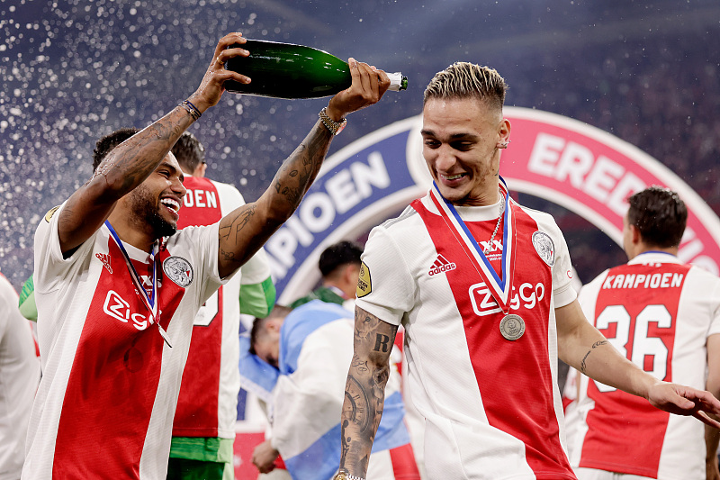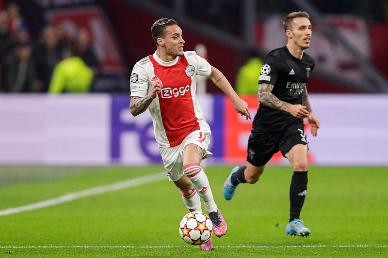 安东尼是2020年夏窗从巴西圣保罗加盟阿贾克斯,转会费为1580万欧元,当时滕哈格将其视为球队边路新一代领军人物。加盟之后的第一个赛季,滕哈格就给了安东尼绝对主力位置,而这位巴西边锋也不负所托。在各项赛事出战了46场,打进11球助攻8次,属于一炮而红。之后的一个赛季,安东尼的表现继续高光,33场12球10助攻,成功吸引了欧洲豪门的关注。
