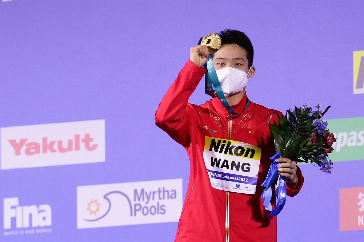 6月30日,在匈牙利布达佩斯举行的2022年世界游泳锦标赛跳水项目男子1米板决赛中,中国选手王宗源获得冠军。新华社发