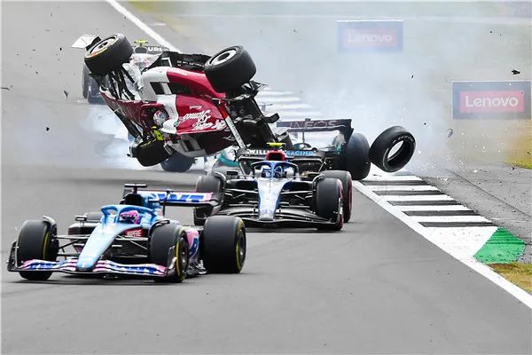 然而正赛中却出现了出乎所有人意料的情况,在一个并不算好的起步后,周冠宇的阿尔法罗密欧赛车,因为轮胎突遭撞击而腾空而起,上下翻转后火花四溅地冲向缓冲区,可就在与轮胎墙“亲密接触”前,红白色的24号赛车因为巨大的冲力以及砂石的作用,再度离开地面,越过轮胎墙,落入了用于隔离赛道与观众席的铁丝网中。
