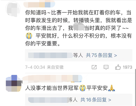 “发生这样的事故让人遗憾,好在周冠宇目前的状况正常,正在医疗中心接受详细评估。”大约一小时后,阿尔法罗密欧车队更新了信息,赛会随后进一步确认,周冠宇没有大碍,已经被准许离开医疗中心并返回车队,这让车手和车迷吃下了一颗定心丸。周冠宇在赛后表示:“幸运的是,事故发生时自己一直很清醒,身体并未受到太大的冲击。”只是从他的语气中,还是能感到对于提前退赛的一丝遗憾。