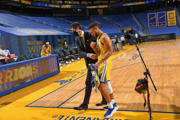 当库里在杜兰特走后的第一个赛季只打了5场比赛就选择接受手掌手术,宣告赛季报销的时候,他被指责成了逃兵,杜兰特走了,克莱因为总决赛的伤病赛季报销,库里身边一下子少了两个最重要的帮手,然后他也找了个借口早早结束了赛季的征程,库里的领袖能力受到了巨大的冲击。随后一个赛季,水花兄弟渴望卷土重来,然而,赛季开始前,克莱在一次训练赛中遭遇跟腱撕裂,再度赛季报销,这一次,库里不能再逃避了,他必须展现出领导力,不论如何,他就算是咬牙也得带领勇士打完这个赛季。