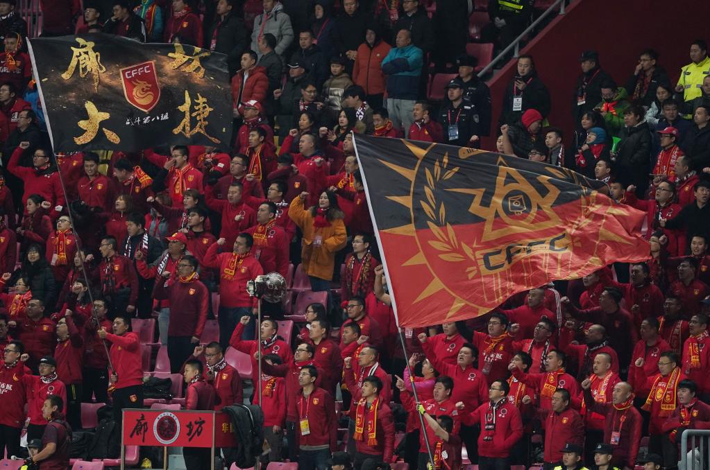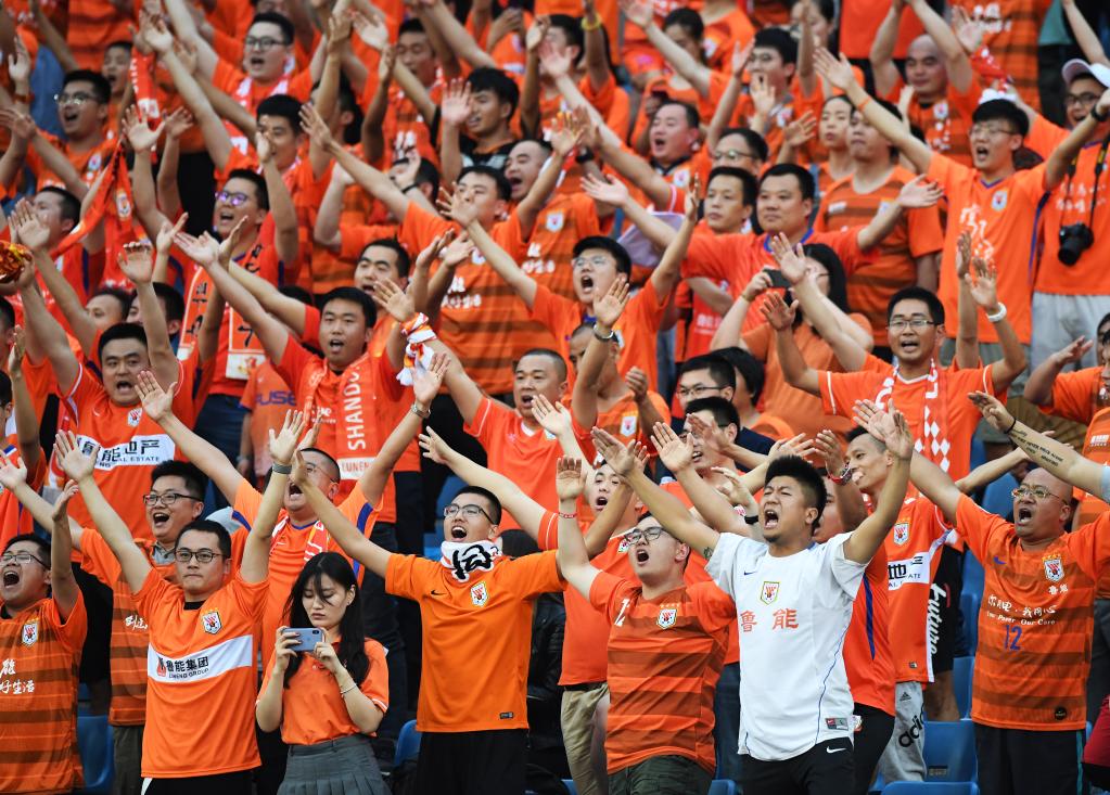 资料图:2019年6月14日,山东鲁能队球迷为球队加油(新华社记者王全超摄)