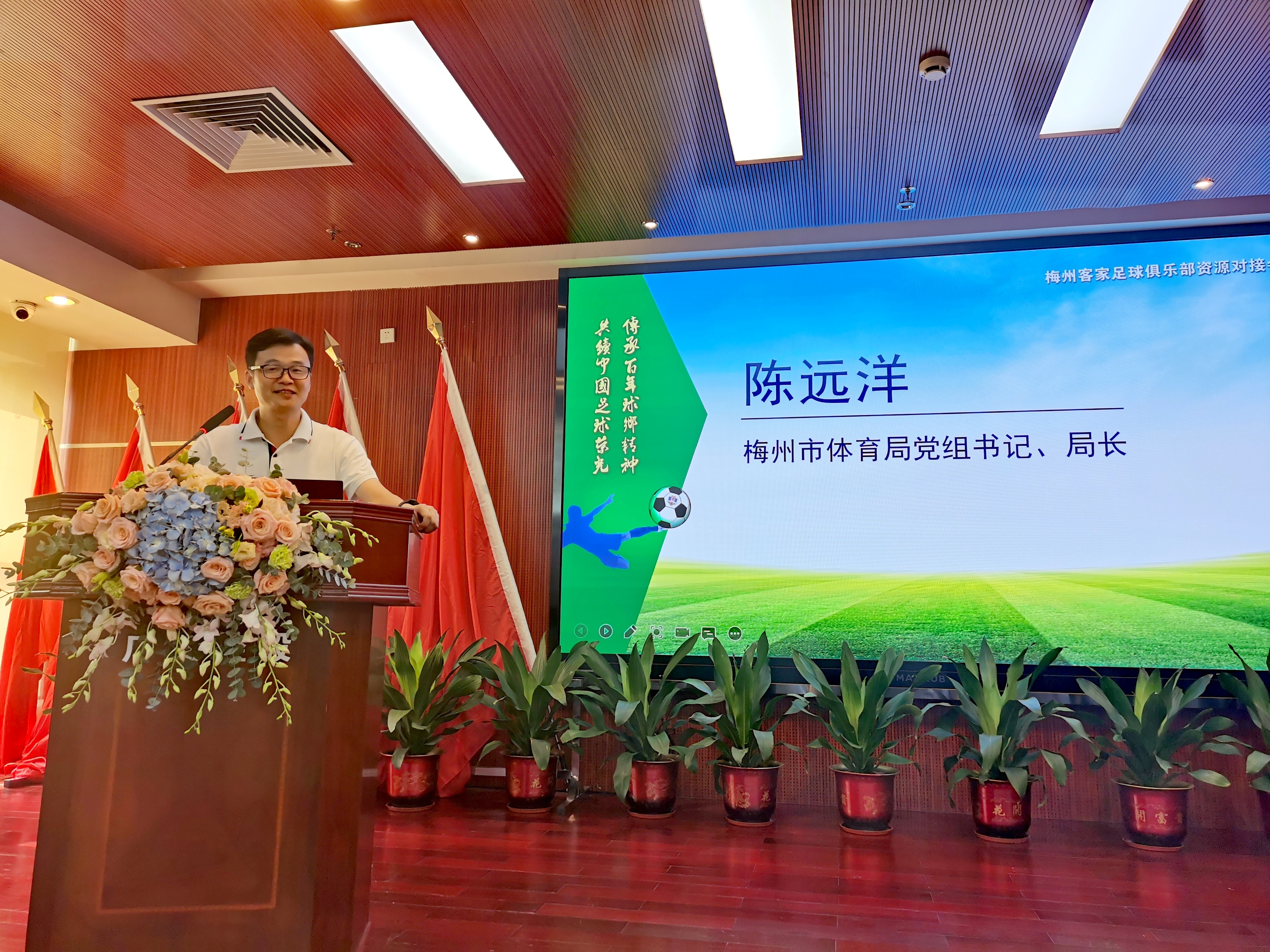中国体育报讯 为促进梅州市体育产业高质量发展,带动梅州地区经济高质量发展,梅州市体育局在广东省控股集团、南方联合产权交易中心的协助下,于8月3日在广州举办了梅州市体育产业资源重点项目首期推介会暨梅州客家足球俱乐部资源对接会。