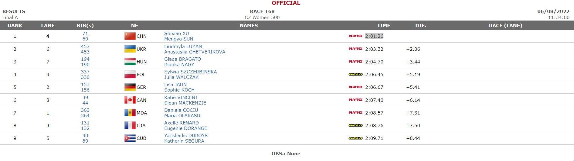 当地时间8月6日,2022年皮划艇(静水)世锦赛在加拿大哈利法克斯继续进行,在女子双人划艇500米A组决赛中,东京奥运会金牌组合孙梦雅/徐诗晓在夺得奥运冠军一周年之际,又斩获世锦赛冠军。这是两人继2019年之后,再次获得世锦赛金牌!恭喜孙梦雅、徐诗晓!目前中国队以1金1银1铜,位列奖牌榜第4名。