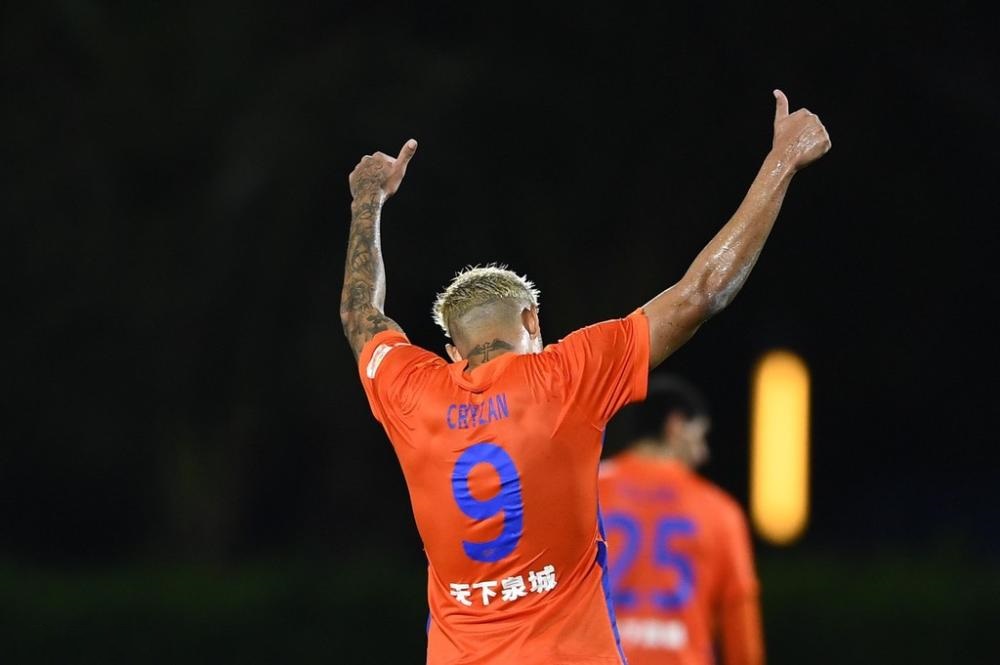 这是一粒金子般的进球,也是克雷桑连续5场比赛收获进球。而在这5场比赛中,山东泰山全部拿到了胜利。不过与此前4场比赛相比,本场比赛克雷桑踢得更加收放自如。90分钟比赛里,他虽然只有1次射门,但6次突破全部成功、制造了5次对手犯规,两项数据都是全场最高。此外,他还有1次关键传球、2次成功长传、6次争顶、1次抢断和1次拦截,表现可谓是极其全面。这位一度被称为“水雷”的大号边锋,终于在泰山队展翅翱翔。