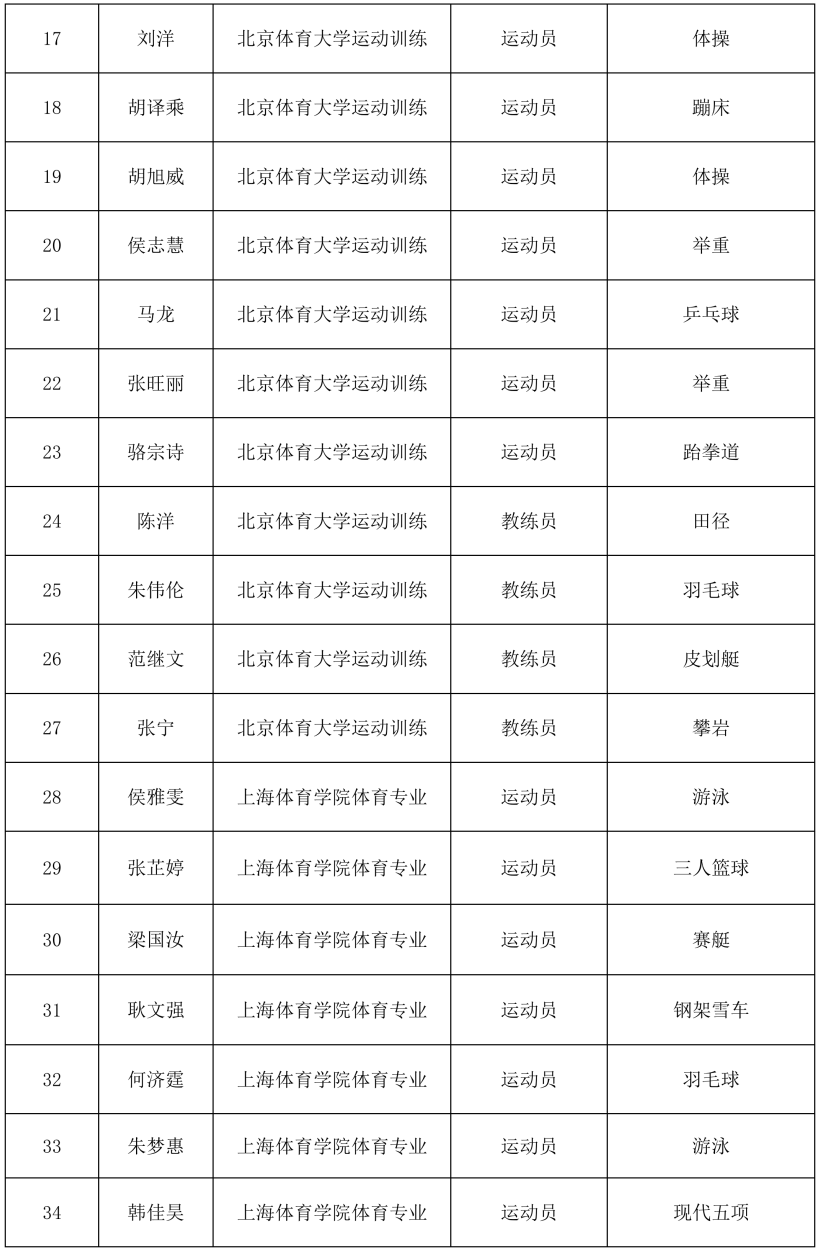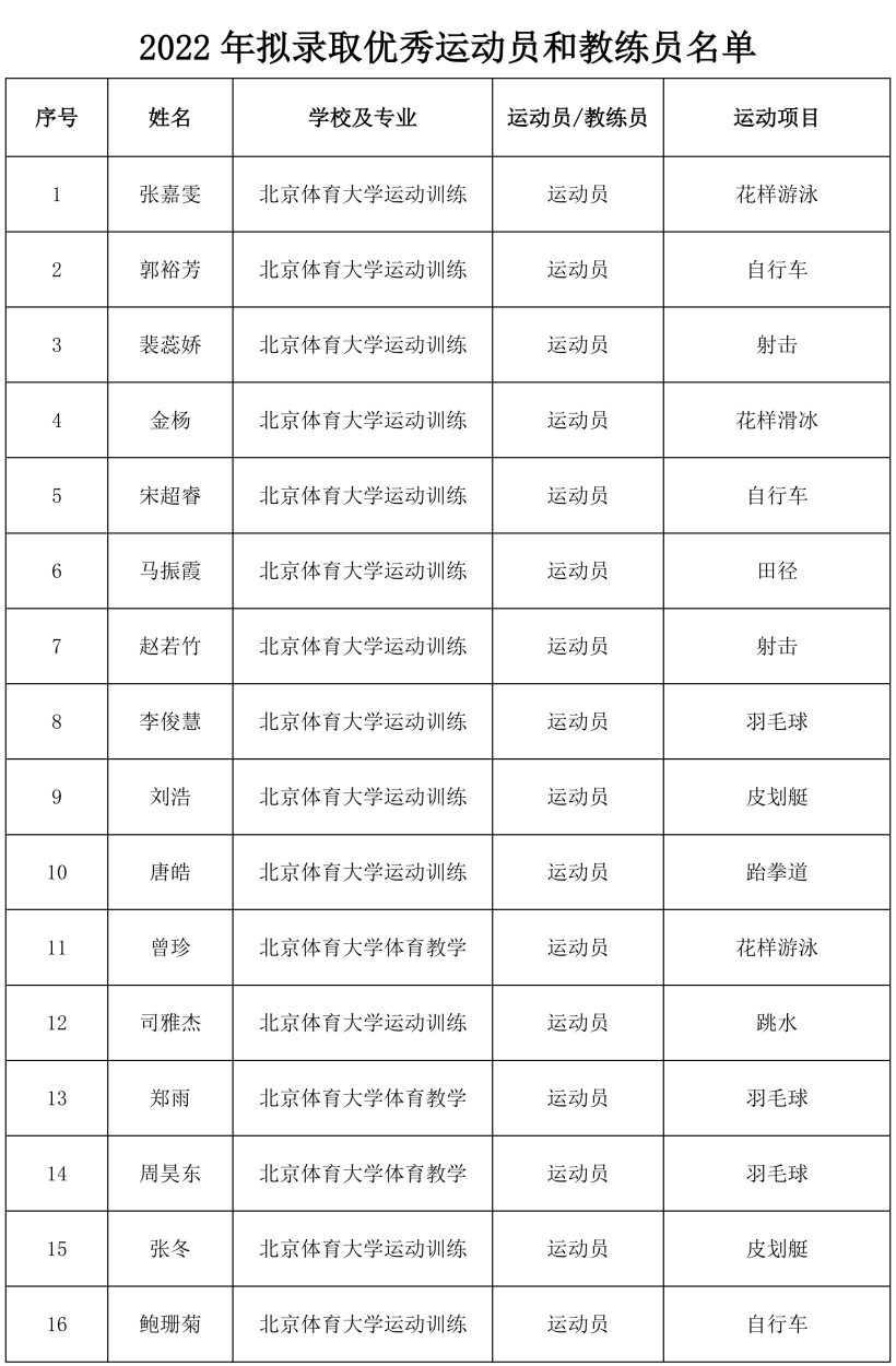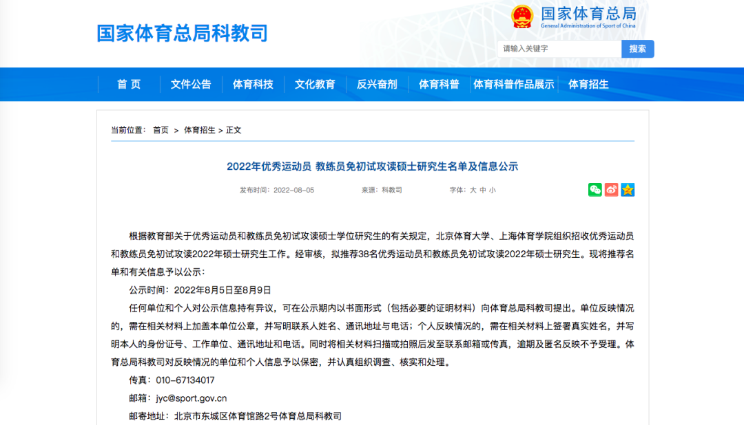 根据公示名单,本年度共有38名优秀运动员、教练员将被保研至北京体育大学和上海体育学院两所双一流体育学府就读专业型硕士学位专业。