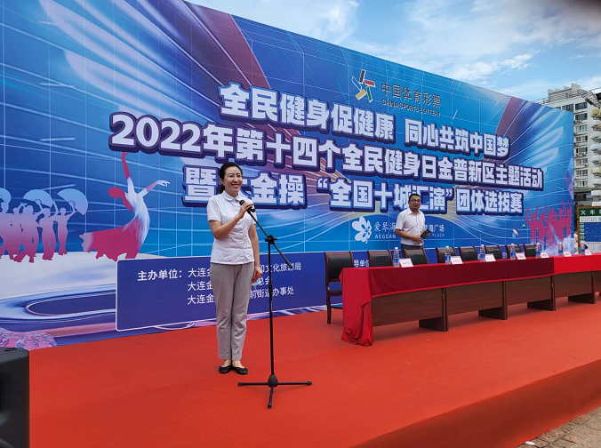 8 月 8 日上午,2022 年金普新区全民健身日主题活动暨大金操"全国十城汇演"团体选拔赛圆满结束,大连 48 个街道分为 12 个赛区共超过 100 支队伍参赛,其中金州火车站站前广场作为主会场参赛人数超过千人。西安、沈阳、赤峰、北京、甘肃、山东、山西、济南、等九座城市的大金操分会,也在同一天进行了团体汇演。金州站前街道、金普新区教育和文化旅游局等单位领导出席了大连主会场开幕式。