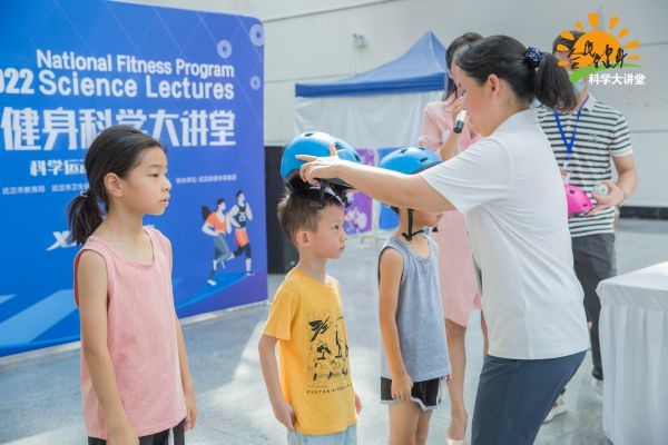 武汉市体育局相关领导也来到了活动现场,给孩子们带来了特别的礼物——可爱的轮滑头盔,并贴心地为孩子戴好,还叮嘱大家注意防暑、注意安全,希望大家在课程中能学有所获。在接受采访时,市体育局相关领导表示:“今天是第十四个全民健身日,也是我们体育法修订后的第一个全民健身日。武汉市体育局这几年着力打造市民参与的全民健身系列活动,目前有全民健身运动会、社区趣味运动会以及今年我们重点打造的50场全民健身科学大讲堂活动,旨在让更多的市民朋友参与到全民健身活动中来,提高体质、科学运动、健康生活。”